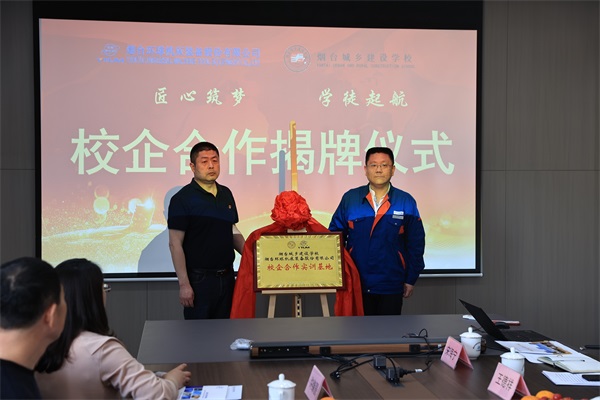 為進一步深化校企合作,實施人才強企戰(zhàn)略,實現(xiàn)校企合作共贏、共謀發(fā)展的美好愿景。2023年5月12日,公司與煙臺城鄉(xiāng)建設(shè)學(xué)校舉行校企合作揭牌儀式,在公司三樓第一會議室舉行。公司黨委書記、常務(wù)副總經(jīng)理崔文剛,工會主席陳瑋,企業(yè)管理中心副主任王德祥,技師工作站站長林浩,校方教學(xué)分管領(lǐng)導(dǎo)張昌勇,國信部主任馮濤等一行5人,近年對我司人才招引工作給予大力支持的市直機關(guān)工委副書記蘇小峪、市委財經(jīng)辦秘書科科長王衍應(yīng)邀出席本次揭牌儀式。