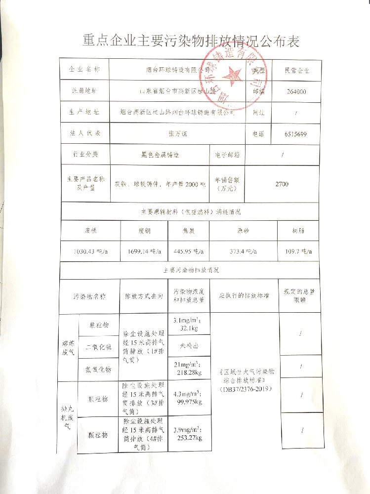 重點(diǎn)企業(yè)主要污染物排放情況公布表